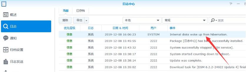 #11、重启后去套件中心里安装日志中心工具,过一段时间去查看日志